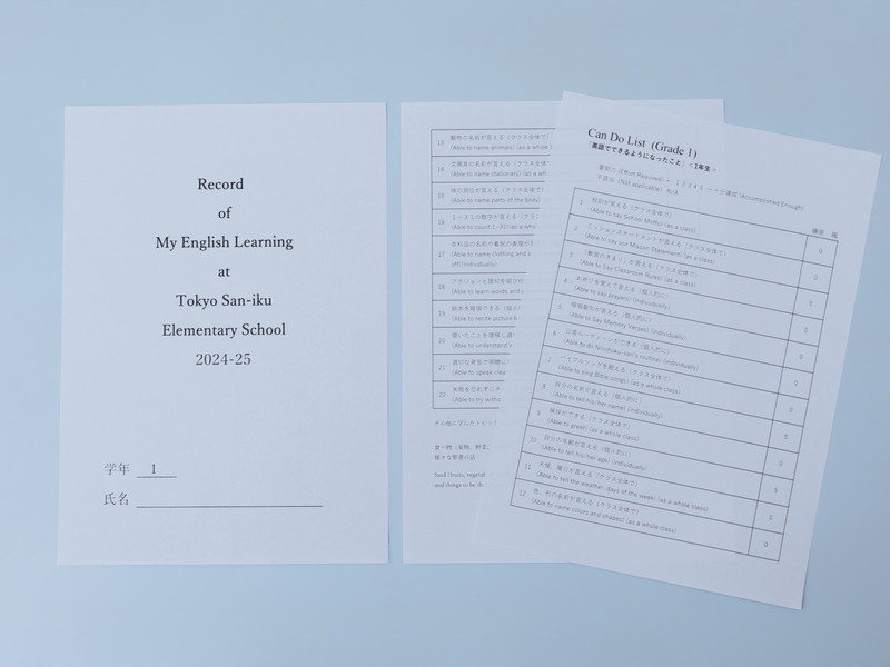 「学校で何を教わっているのか、我が子からいまいち報告がない」「英語の授業はどこまで進んでいるのか」。以前、保護者の方からこのようなご質問をいただいたことがありました。そこで本校では、2022年度より「Record of My English Learning」という個人別英語学習の記録を作成しています。この記録では、各学年の終わりに、1年間で学んだ内容項目とその習熟度を5段階で示し、個人ごとにお知らせしています。これにより、各学年での学習内容や一人ひとりの習熟度をご家庭にも共有できるようになりました。また、習熟度を数値化することで、児童は自分のよくできている点に自信を持つとともに、今後努力すべき点を把握できるようになります。本校では、これを単なる「評価」ではなく、「学びの歩みを記録するもの」として位置付けています。