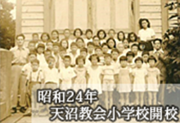 1919年(大正8年) キリスト教精神に基づく一貫教育の必要性に着目し、杉並村天沼に「天沼学院」小学部、中学部、高等部が開校。