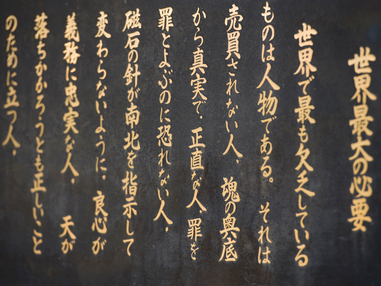 「世界で最も必要とされる人物」(エレン・G・ホワイト著「教育」より)銘板を駐車場へ移設。