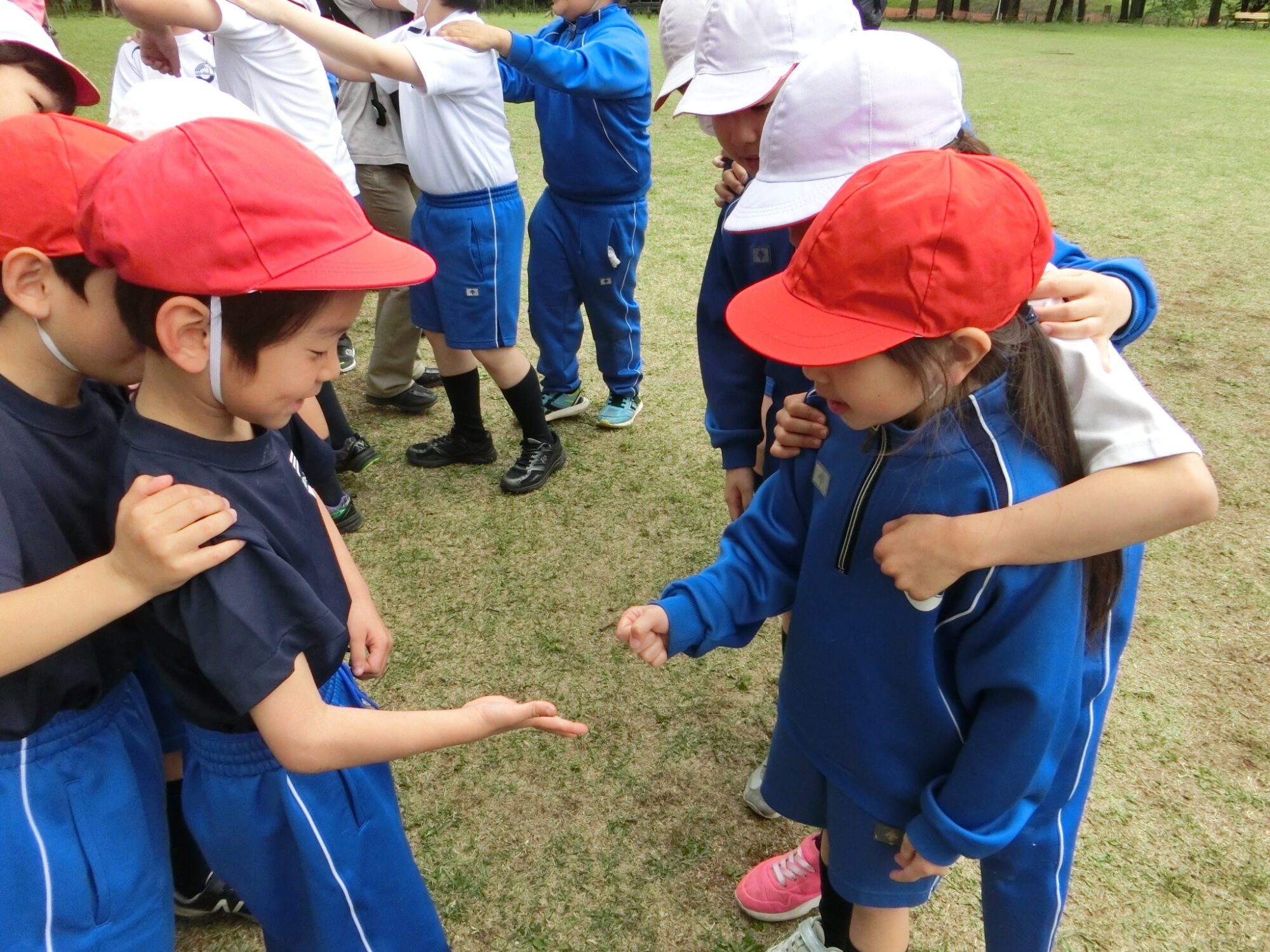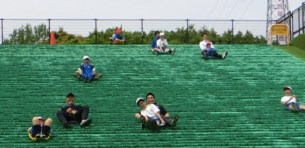 クラスの仲間と遊んだり、1年生と6年生、2年生と5年生で遊んだり、兄弟姉妹で遊んだり、教員と一緒に遊んだり、広い公園内を仲間と一緒に存分に、あれもこれもやりたいと疲れ知らずに走り回りました。