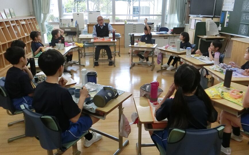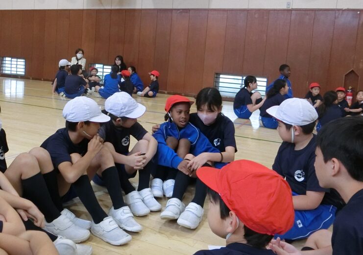 6年生が事前に1年生一人ひとりに好きな食べ物をインタビューし、全校児童がそのクイズに答えるというものです。またファミリー毎に分かれて自己紹介し、さらには昼食会を行い、学校全体で家族のような雰囲気を味わい、親しい交流の時間を持ちました。