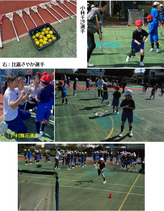 「ラクロスは全く知らなかったけど面白い!」「またやってみたい!」「すごく楽しかった!」「オリンピック選手めざして頑張ってください!」の子どもたちの声と共に、3人の選手とハイタッチして別れました。