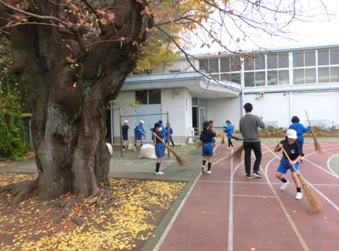 毎年「落ち葉の季節がやってきた」と少し喜べない思いになってしまいそうな大人ですが、子どもたちは違います。昇降口の扉が開く前に、寒い中、自発的に落ち葉掃きをしてくれる子どもたちがいます。一か所にきれいにまとめておいてくれたり、大きな袋に入れてくれたりするのです。また、教職員が掃き掃除をしていると、「手伝うよ~」と言って楽しそうに一緒にやってくれる姿が見られます。